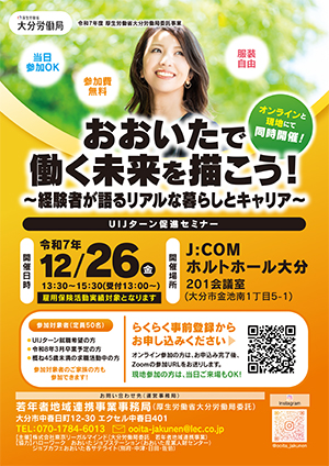 大分県内での就職を促進するため、UIJターンを希望する学生や令和8年3月新規大学等卒業予定者、並びに概ね45歳未満の若年求職者等を対象としたセミナーを開催します。